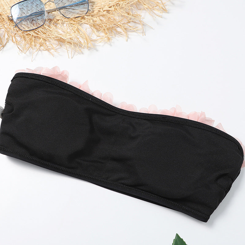 Split Tube Top Pure Color Bikini Lace Swimsuit