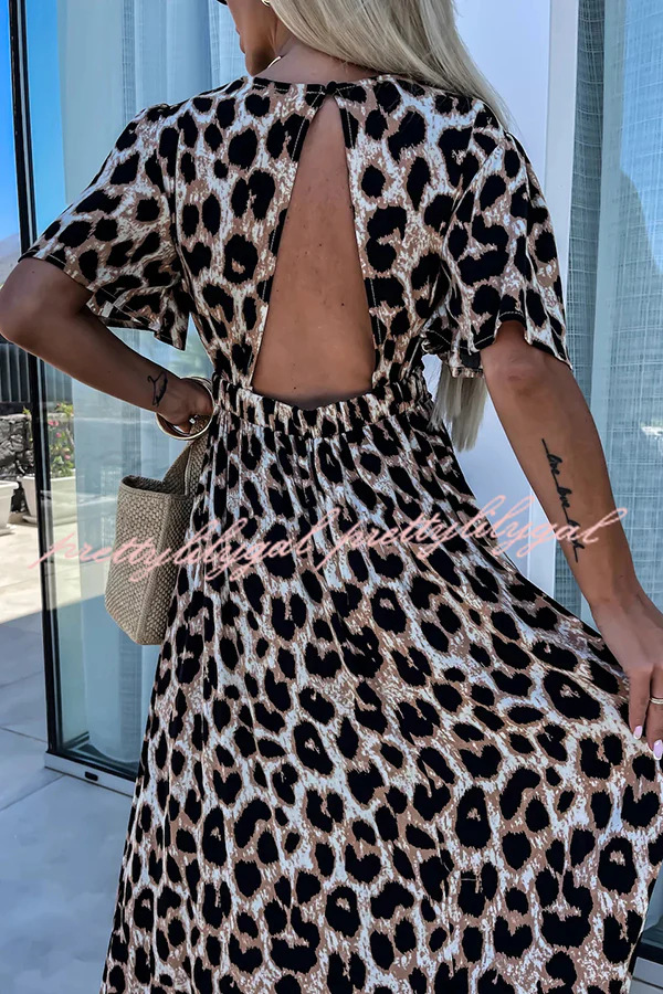 Spring Leopard Print Short Sleeve V-neck Elastic Slit Long
