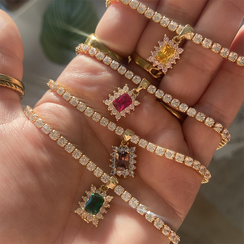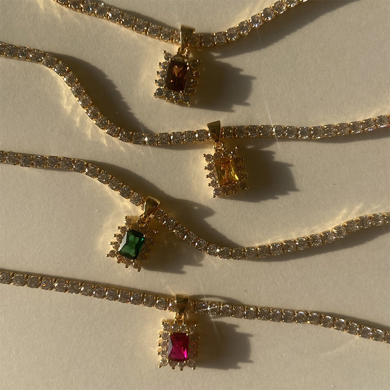 Square Gem Unique Rhinestone Necklace Female Light Luxury Niche Sweet Clavicle Chain