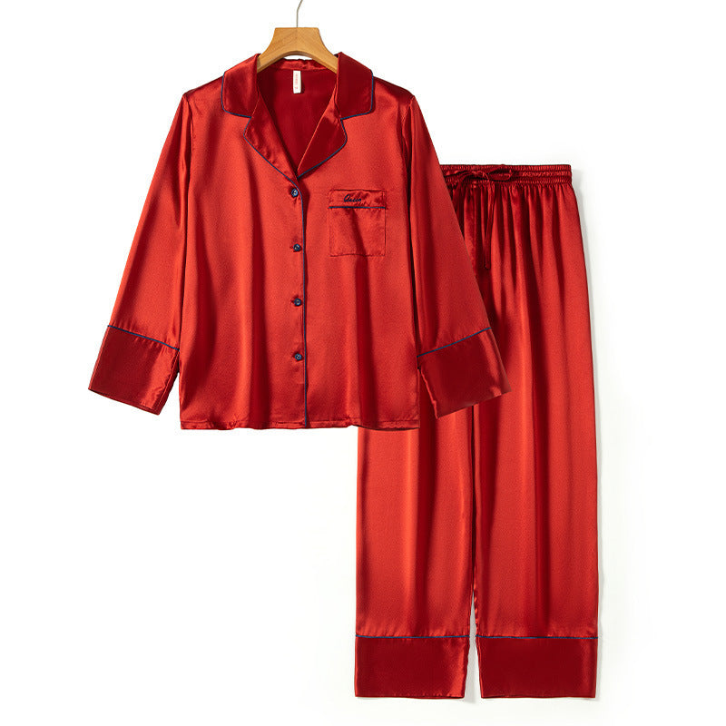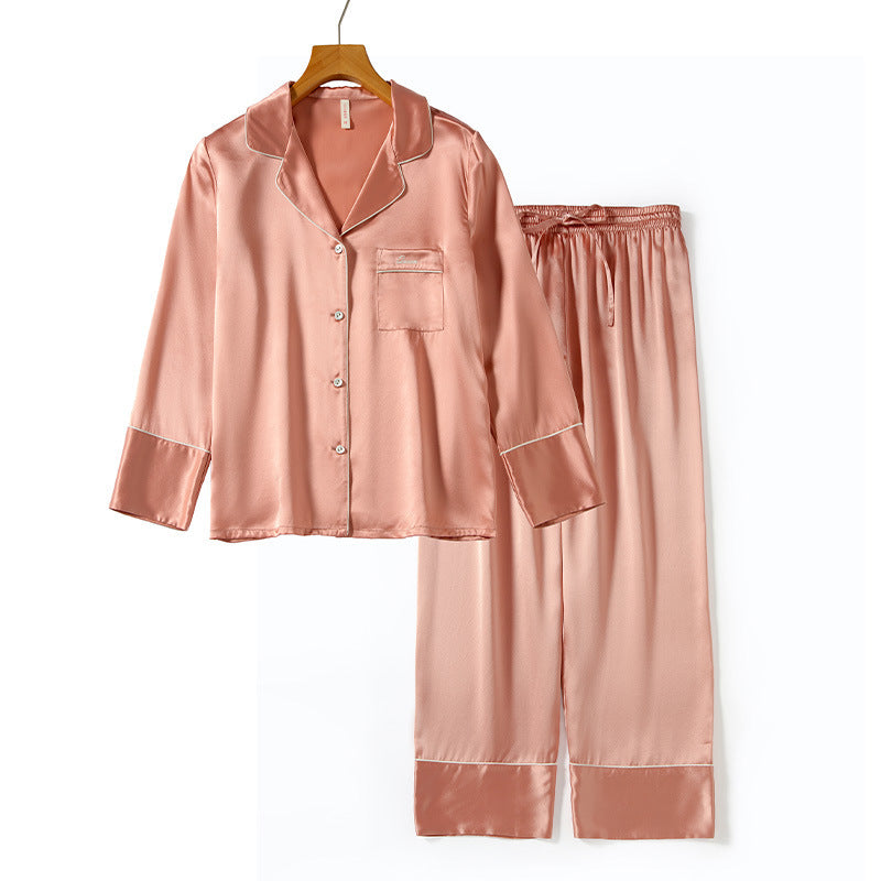 Women's Autumn And Winter Simplicity Silk Pajamas