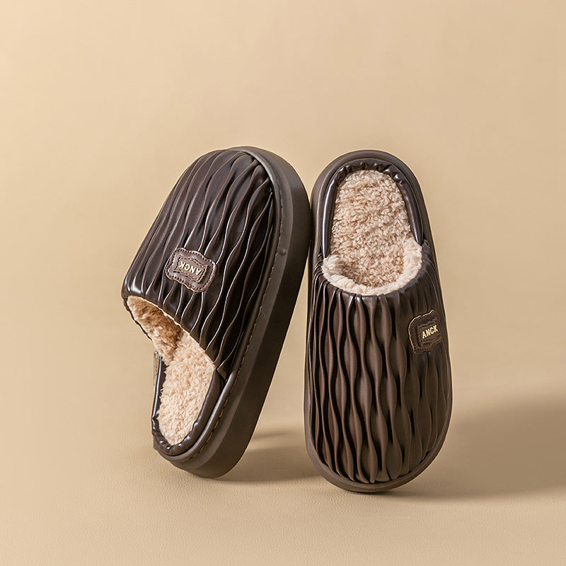 Women's Waterproof Warmth Retention Material Pod Pleated Cotton Slippers
